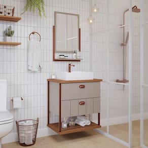 Para valorizar cada ambiente da sua casa é importante investir em móveis de ótima qualidade que sejam funcionais e modernos. É o caso do Conjunto de Gabinete com Espelheira Olivia Espresso Móveis que foi desenvolvido com design moderno para embelezar e otimizar o seu espaço de banheiro ou lavabo.