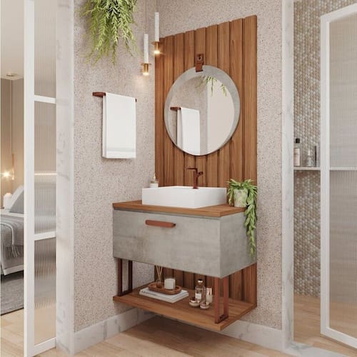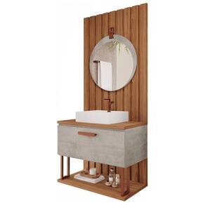 Conjunto para Banheiro com Gabinete, Painel Ripado e Espelheira Mari Espresso Móveis é formado por Gabinete para Banheiro 100% MDF, Cuba em Mármore Sintético, Painel Ripado em MDF e Espelheira em MDF. Com amplo espaço interno, seu design e características garantem melhor e maior durabilidade ao produto. Aproveite e adquira já o Conjunto Mari Espresso Móveis para deixar o seu ambiente ainda mais charmoso, sofisticado e elegante. Altura do Conjunto: 117 cm Ambiente: null Ambiente Principal: Banheiro codigo_ean: 7900288195357 Cor: Cimento Cor do Produto: Cimento Informação Complementar: 1x Espelheira Para Banheiro Alça em Couro Lua Cimento Largura: 60 cm Altura: 60 cm Peso: 4,1 kg Profundidade: 1,5 cm Necessita Montagem: Não