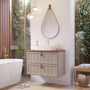 Características: Estrutura em MDF Acabamento em Pintura UV Puxador e alça em couro 01 Porta com pistão à gás e dobradiças metálicas 01 Gaveta com corrediças telescópicas Acompanha cuba em mármore sintético Acompanha espelho