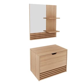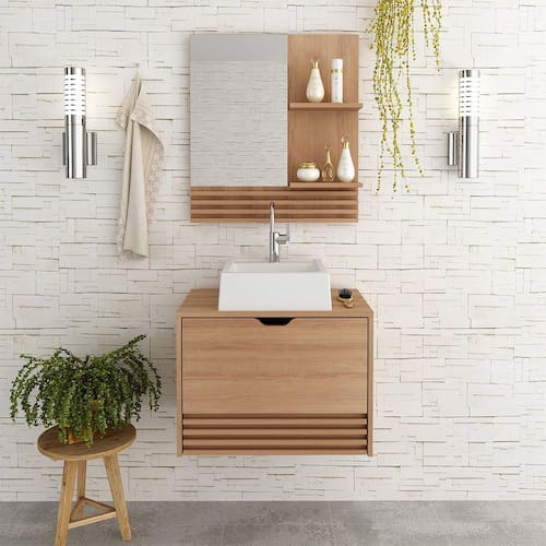 CARACTERÍSTICAS TÉCNICAS: - Produzida em MDP de 15 mm - Acabamento UV na cor Amêndoa - Acompanha Espelho - Porta Basculante com Articulador e Dobradiças Metálicas - Gaveta com Corrediças Metálicas - Puxador tipo Cava - Balcão Suspenso *Cuba NÃO incluso, apenas demonstrativo *Kit Composto por Gabinete Suspenso (3613) e Espelheira (3614)