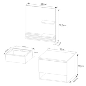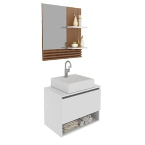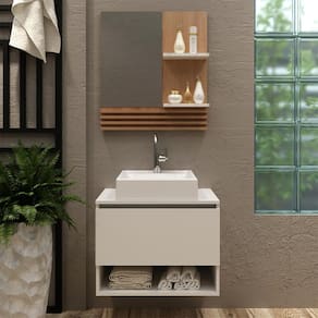 O Kit para Banheiro é a escolha ideal para transformar o seu espaço em um ambiente elegante e organizado. Com um design atual, ele oferece não apenas beleza, mas também funcionalidade, contribuindo para um banheiro agradável e útil. Produzido com materiais de alta qualidade, o kit garante durabilidade e resistência, criando um ambiente harmonioso e agradável para o seu dia a dia. CARACTERÍSTICAS TÉCNICAS: - Produzida em MDP de 15 mm - Acabamento UV na cor Branco, Amêndoa e Mármore Branco - Cuba em Mármore Sintético - Acompanha Espelho - Porta Basculante com Articulador e Dobradiças Metálicas - Puxador tipo Cava - Balcão Suspenso *Kit Composto por Gabinete Suspenso (3606), Espelheira (3614) e Cuba (3630) INFORMAÇÕES TÉCNICAS: 3606: Alt. 46,5 cm x Larg. 60 cm x Prof. 38,7 cm x P. 12 kg 3614: Alt. 44,7 cm x Larg. 60 cm x Prof. 38,7 cm x P. 12,65 kg 3630: Alt. 11,5 x Larg. 35 x Prof. 334 cm P. 5,5 kg INFORMAÇÕES ADICIONAIS: - ATENÇÃO: Não trabalhamos e não nos responsabilizamos pela montagem do móvel. Antes da montagem conferir se o produto está de acordo com o que comprou, produto montado e danificado pela montagem não será aceito troca. Montagem e instalação por conta do comprador. - As imagens ambientadas são meramente ilustrativas e podem apresentar itens que não compõe o produto. As cores do produto podem variar de acordo com o monitor, a iluminação do ambiente ou sua percepção visual. - Limpeza: Deve ser feita com pano macio e seco ou levemente. Não devem ser utilizados abrasivos como palha de aço e objetos cortantes. Garantia para defeitos de fabricação conforme Código de Defesa do Consumidor.