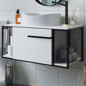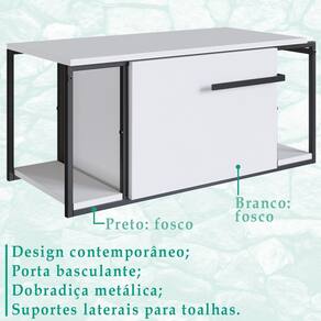 Gabinete Suspenso Para Banheiro 1 Porta Basculante P1019, além de funcional, conta com design conceitual e super em alta. Possui estrutura em aço e MDP de 15 mm, porta basculante com braço articulado e dobradiça metálica, possui também puxador em aço e suportes laterais com prateleira para armazenamento de suas toalhas, permitindo seu fácil acesso. É fixado na parede através de parafusos e buchas. Com design industrial e bom gosto, ele acrescentará comodidade e beleza ao seu banheiro. Este móvel chegará na sua casa separado em 01 volume.