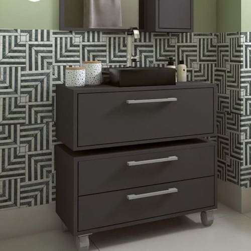 O gabinete suspenso com balcão para banheiro Alice, da Faema, possui gabinete com uma porta basculante com amplo espaço interno. Possui também um balcão baixo com rodízios que facilitam a movimentação do móvel na hora da limpeza e 2 gavetas. Não acompanha cuba. Transforme seu banheiro em um espaço funcional e ao mesmo tempo lindo! Acabamento da Gaveta: Finish Foil Acabamento da Porta: Finish Foil Acabamento dos Pés: Liso Acompanha Cuba: Não Acompanha Manual de Instalação: Sim Acompanha Parafusos Para Fixação Na Parede: Sim Altura dos Pés: 10 Ambiente Principal: Banheiro Complexidade da Montagem: Média: pode ser montado por mais de uma pessoa e/ou necessite de maior conhecimento para montagem Cor: Grafite Cor do Produto: Grafite Cor Interna: Grafite Escala de Brilho: Fosco Escala de Brilho da Gaveta: Fosco Escala de Brilho da Porta: Fosco Furação para Cuba e Torneira: Não Gaveta com Chave: Não Itens Inclusos: 1 Gabinete, Kit Ferragens e Manual de Montagem Linha ou Coleção: Banheiro Manual de Montagem e Instalação: https://product-hub-prd.madeiramadeira.com.br/874027/documents/e9140296-21ca-4e54-8cf4-ac443f4b3bc8084778987449503535cjbl2012.pdf Material da Gaveta: MDP Material da Porta: MDP Material do Puxador da Gaveta: ABS Material do Puxador da Porta: ABS Material do Tampo: MDP Material dos Pés: ABS Material Principal: MDP Necessita Montagem: Sim Origem do Produto: Nacional Pés Reguláveis: Não Peso: 28.58 Peso Máximo por Gaveta: 10 Possui Nichos: Não Possui Pés: 04 Possui Portas: 01 Possui Prateleiras: Não Possui Recorte No Tampo Para Cuba: Não Possui Recorte No Tampo Para Misturador: Não Possui Rodízio: Sim Possui Sifão: Não Possui Tampo: Sim Produto Montado: Não Quantidade de Gavetas: 02 Recomendações de Uso, Manutenção e Limpeza: Para a limpeza do móvel utilizar pano levemente umedecido com água Resistente à Chuva: Não Rodízio com Trava: Sim Sapatas Niveladoras: Não Sistema de Montagem: Parafusos, cavilhas e minifix Suporta Até (kg): 20 Suporte para Toalheiro: Não Tamanho Indicado Para Cuba: 32cm x 30cm Tipo de Corrediça da Gaveta: Metálica Simples Tipo de Dobradiça/Corrediça da Porta: Metálica Tipo de Gabinete: Gabinete com Rodízio Tipo de Móvel para o Banheiro: Gabinete de Banheiro Tipo de Porta: Basculante Tipo de Puxador da Gaveta: Externo Tipo de Puxador da Porta: Externo Ean: 7909903453308