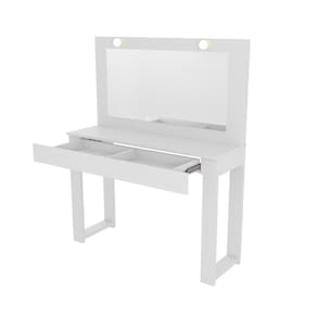 A Escrivaninha Penteadeira possui um amplo espelho iluminado por LEDs.