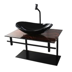 dados técnicos itens inclusos: - bancada de vidro temperado com furo para instalação da torneira 3,5cm diâmetro e da válvula click 4,5cm diâmetro - cuba de vidro oval - suporte preto, resistente a umidade extrema e não enferruja - kit parafusos completo para instalação - prateleira de vidro - válvula click.