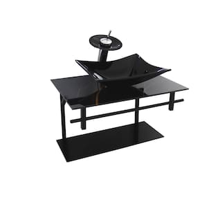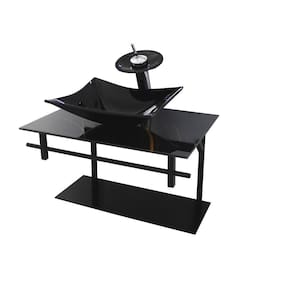 dados técnicos itens inclusos: - bancada de vidro temperado com furo para instalação da torneira 3,5cm diâmetro e da válvula click 4,5cm diâmetro - cuba de vidro retangular - suporte preto, resistente a umidade extrema e não enferruja - kit parafusos completo para instalação - prateleira de vidro - válvula click.