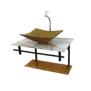 dados técnicos itens inclusos: - bancada de vidro temperado com furo para instalação da torneira 3,5cm diâmetro e da válvula click 4,5cm diâmetro - cuba de vidro retangular - suporte preto, resistente a umidade extrema e não enferruja - kit parafusos completo para instalação - prateleira de vidro - válvula click.