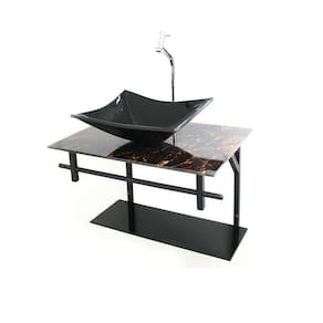 dados técnicos itens inclusos: - bancada de vidro temperado com furo para instalação da torneira 3,5cm diâmetro e da válvula click 4,5cm diâmetro - cuba de vidro retangular - suporte preto, resistente a umidade extrema e não enferruja - kit parafusos completo para instalação - prateleira de vidro - válvula click.