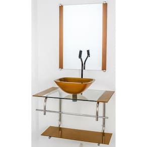 Gabinete de vidro para banheiro inox 70cm cuba quadrada cqp dourado real Os nossos gabinetes são indicados para projetos arrojados e de muito bom gosto, além de valorizar o seu ambiente com sofisticação em uma decoração de alto padrão, ele consegue usufruir das vantagens que o vidro proporciona e gerar uma durabilidade indiscutível, sem contar que com as várias opções de cores, você sempre poderá encontrar uma cor perfeita para o seu banheiro. Itens inclusos: - bancada de vidro com furo para instalação da torneira 3,5cm diâmetro e da válvula click 4,5cm diâmetro ; - cuba de vidro quadrada; - espelho; - estrutura e porta toalha de inox, esse suporte não enferruja e tem alta resistência a umidade; - kit parafusos completo para instalação; - prateleira de vidro da bancada; - válvula click. Dimensões: - bancada de vidro: 70 x 45cm largura x profundidade ; - cuba de vidro quadrada: 35 x 35cm comprimento x largura ; - prateleira bancada: 70 x 25cm largura x profundidade ; - espelho: 70 x 45cm largura x altura ; - porta toalha: 70cm largura ; - válvula: 1 1/4. Espessuras: - bancada de vidro: 8mm; - cuba de vidro: 10mm; - prateleira bancada: 6mm; - espelho: 3mm. : 12 meses conforme política de troca e devoluções . Atenção: preço referente somente ao gabinete, não acompanha torneira. Montagem: montagem e instalação não inclusa na venda ou preço do produto, elas são de inteira responsabilidade do cliente. Imagens ilustrativas.
