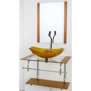 Gabinete de vidro para banheiro inox 60cm cuba oval chanfrada dourado real Os nossos gabinetes são indicados para projetos arrojados e de muito bom gosto, além de valorizar o seu ambiente com sofisticação em uma decoração de alto padrão, ele consegue usufruir das vantagens que o vidro proporciona e gerar uma durabilidade indiscutível, sem contar que com as várias opções de cores, você sempre poderá encontrar uma cor perfeita para o seu banheiro. Itens inclusos: - bancada de vidro com furo para instalação da torneira 3,5cm diâmetro e da válvula click 4,5cm diâmetro ; - cuba de vidro oval chanfrada; - espelho; - estrutura e porta toalha de inox, esse suporte não enferruja e tem alta resistência a umidade; - kit parafusos completo para instalação; - prateleira de vidro da bancada; - válvula click. Dimensões: - bancada de vidro: 60 x 45cm largura x profundidade ; - cuba de vidro oval chanfrada: 46 x 31cm comprimento x largura ; - prateleira bancada: 60 x 25cm largura x profundidade ; - espelho: 60 x 45cm largura x altura ; - porta toalha: 60cm largura ; - válvula: 1 1/4. Espessuras: - bancada de vidro: 8mm; - cuba de vidro: 10mm; - prateleira bancada: 6mm; - espelho: 3mm. : 12 meses conforme política de troca e devoluções . Atenção: preço referente somente ao gabinete, não acompanha torneira. Montagem: montagem e instalação não inclusa na venda ou preço do produto, elas são de inteira responsabilidade do cliente. Imagens ilustrativas.