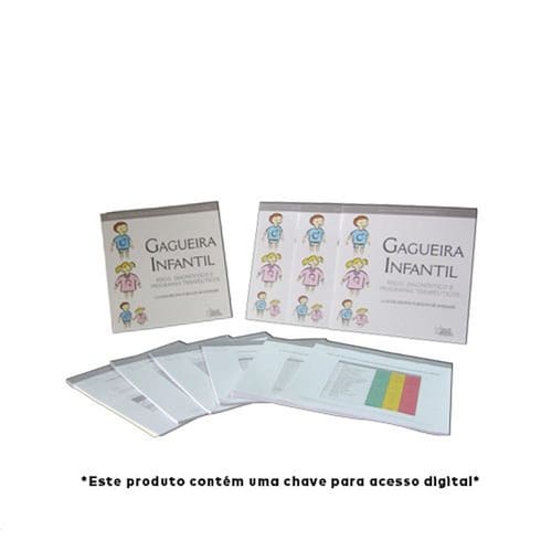 Esta obra completa contém: 1. Um livro (Gagueira Infantil: risco, diagnóstico e programas terapêuticos). 2. Três manuais (Manual para se Conhecer a Gagueira – que também pode ser comprado separadamente pelo código 1019) – Manual desenvolvido para ser entregue aos pais, escolas e outros profissionais que trabalham com crianças. 3. Um bloco de cada um dos Protocolos do Capítulo 12 (cada bloco com 25 Protocolos): 3.1. Protocolo de Risco para a Gagueira do Desenvolvimento (PRGD). 3.2. Protocolo da Performance Motora da Fala (PPMF). 3.3. Protocolo do Perfil da Fluência da Fala e sua Comparação com os Valores de Referência para a Idade (ABFW / C). 3.4. Protocolo das Características de Temperamento (PCT). 3.5. Protocolo das Atitudes Comunicativas dos Pais (PACP). 3.6. Protocolo de Eficácia do Tratamento (PET). 4. Uma chave de acesso aos Protocolos do Capítulo 12 para impressão e utilização clínica (descritos no item 3).