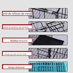 Esta gaiola, com design dobrável e portátil, se dobra e se transforma em uma embalagem pequena. Possui uma alça de transporte removível que pode ser montada em qualquer lado da gaiola, conforme necessário. Você pode facilmente transportar ou armazenar esta gaiola.