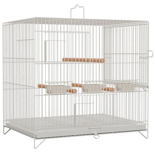 Comprimento: 37 cm Altura: 37 cm Largura: 28 cm Espaçamento entre malhas: 10 mm Pintura em tinta epóxi branca 2 Portas de mola Fundo aramado removível Fundo de chapa removível Pássaro indicado: Coleiro e Curió Passador lateral na direita Alça para transporte 3 Comedouros Marca: Não Informado