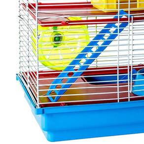 A gaiola conta com dois andares de plástico, proporcionando mais espaço para o hamster se movimentar e explorar. Acompanha escadinhas, comedouro, rodinha acrílica, casinha e bandeja removível, facilitando a limpeza e oferecendo conforto e entretenimento ao seu pet.