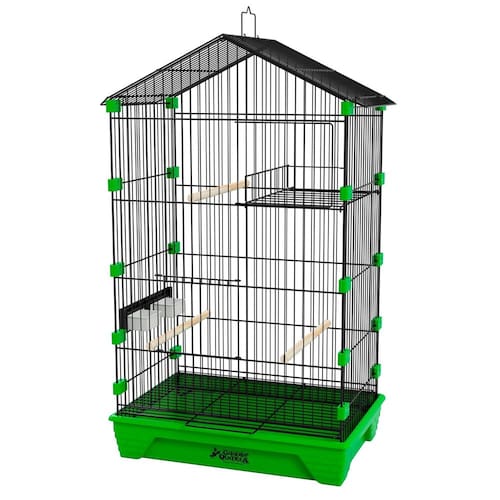 Dados técnicos: Largura: 37 cm Altura: 67 cm Profundidade: 24,5 cm Espaçamento entre malhas: 13 mm Arame BTC Zincado Plástico polipropileno e ABS Produto acompanha manual Indicado para Periquitos Marca: Não Informado