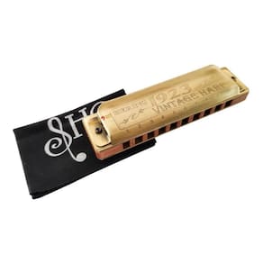 Descrição do produto: harmônica hb 1923 corpo de madeira vintage harp 1020b - hering diatônica placa de cobertura de latão com recobrimento simulando ouro velho, corpo de madeira em verniz, placa de vozes de latão com espessura de 1,07mm, palhetas de latão. Maciez, resposta rápida, alto volume, timbre encorpado. Afinação: b todos produtos são com e garantia do fabricante prazos de troca e devolução: