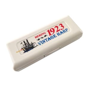 as gaitas hering oferecem ótima qualidade, construção, e também um custo beneficio excelente. A marca pensou tanto nos iniciantes no instrumento ou curiosos em aprender, quanto também para. A hering fabrica diversos modelos de harmônicas diatônicas em todas as afinações do modo maior. As harmônicas hering são referência no meio musical. Com qualidade internacional, apresentam um alto nível de desenvolvimento nos instrumentos, objetivando unir a tradição com embasamento musical e científico. Marca: hering modelo: vintage harp 1923 afinação: g sol número de vozes: 20 vinte placa de cobertura: metal cromado placa de vozes: latão 1,07mm corpo: madeira dimensões: c x l x a 10cm x 1,5cm x 2cm furos: 10 itens inclusos: harmônica, lenço de limpeza, case em abs branco, manual