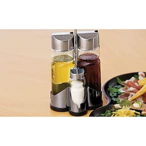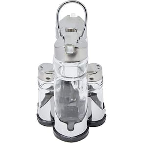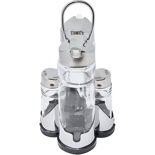 Galeteiro 4 peças O conjunto galheteiro da euro fará toda a diferença na hora de servir. Combina com qualquer ambiente e vai trazer um charme especial para a sua mesa, além da praticidade. As peças são feitas em vidro para facilitar a visualização do seu interior. A tampa é feita em aço inox e o suporte, em aço cromado, altamente duráveis. E ainda pode ser lavado na máquina de lavar louças, facilitando suas tarefas na cozinha. Marca: Nova Opcão