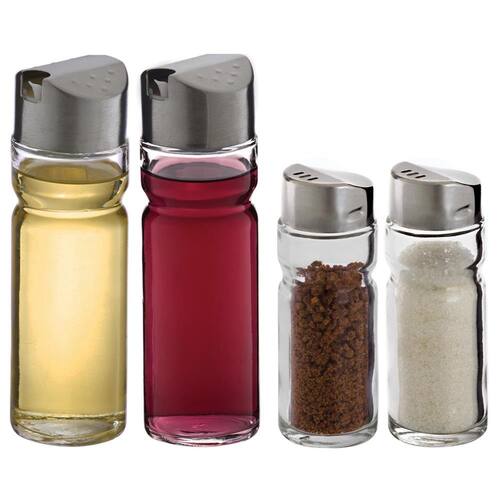 Este Galheteiro da Euro Home vai fazer toda diferença na hora de servir os temperos. Contém 4 peças para azeite, vinagre, pimenta e sal feitas em vidro e com tampa em inox. As peças vêm acondicionadas em um suporte de aço cromado, facilitando na hora de levar a mesa.