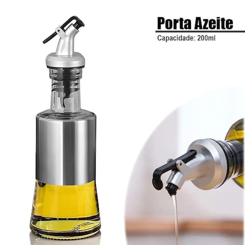 Destaques do Produto: Versatilidade: Ideal para azeite, óleo, shoyu e outros temperos líquidos; Bico Dosador: Controle preciso e fácil manuseio, sem desperdícios; Vedação Segura: O bico rosqueavel evita vazamentos e mantém o conteúdo fresco; Material de Qualidade: Corpo em vidro resistente com detalhes em aço inox; Capacidade: 200ml, tamanho ideal para uso diário.