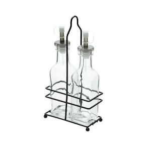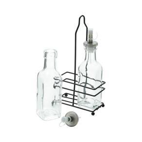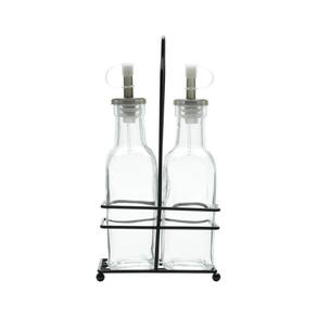 Galheteiro vidro 3 pc suporte metal preto 200ml 11x23cm Lyor