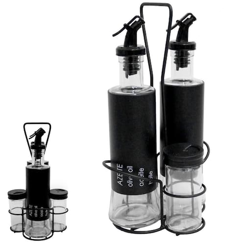 O Galheteiro de Vidro com Suporte Black é o conjunto ideal para quem busca praticidade, organização e estilo à mesa. Composto por 4 peças funcionais, sendo 2 frascos de 300ml ideal para azeite e vinagre e 2 frascos de 85ml para sal, pimenta ou outros condimentos . O corpo dos frascos é feito em vidro transparente de alta qualidade, permitindo fácil visualização do conteúdo. O design moderno com tampa preta e suporte metálico black fosco traz sofisticação para a mesa ou bancada. As tampas dos frascos maiores possuem bico dosador com tampa basculante, garantindo praticidade no uso e vedação eficaz. Os potes menores contam com tampas perfuradas, perfeitas para temperos secos, como sal e pimenta-do-reino moída. O suporte organiza todos os frascos de forma compacta, deixando os temperos sempre à mão. Ideal para ambientes residenciais, restaurantes, cafeterias, food trucks ou áreas gourmet. Com visual clean e funcional, combina com qualquer tipo de decoração. As alças laterais do suporte facilitam o transporte com segurança e praticidade. O conjunto é resistente, fácil de limpar e feito com materiais duráveis. Vidro não transfere cheiro nem sabor, mantendo a qualidade dos temperos. Evita o uso de embalagens industriais à mesa, oferecendo uma apresentação mais elegante. Capacidade ideal para o dia a dia: 300ml para líquidos e 85ml para temperos secos. O acabamento fosco preto do suporte agrega estilo e modernidade ao ambiente. Produto versátil, que pode ser também para molho shoyu, óleo de gergelim, orégano, entre outros. Frascos fáceis de reabastecer e com excelente vedação para manter o frescor. Perfeito para uso próprio ou como presente útil e sofisticado. Ajuda na organização e praticidade da cozinha ou área de refeições. Resistente ao uso frequente e ao contato com óleos e condimentos. Ideal para servir convidados com charme e eficiência. Proporciona uma experiência mais gourmet na hora de cozinhar ou temperar alimentos. Leve, compacto e fácil de armazenar quando não estiver em uso. Torne sua mesa mais funcional e elegante com esse galheteiro completo. Conjunto completo e estiloso para quem valoriza praticidade sem abrir mão do bom gosto Marca: Não Informado