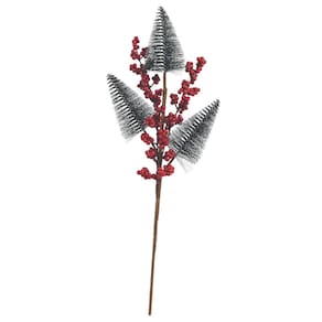 Galho Natalino Decorativo com 3 Mini Pinheiros Nevados e Berries Vermelhas – 48cm