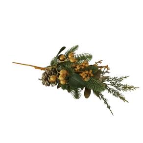 Galho Decorativo Natal 45cm com baga, frutas silvestres e ramos Verdes com pinha Natural, confeccionado em EPS (isopor), Plástico e haste de arame revestida.