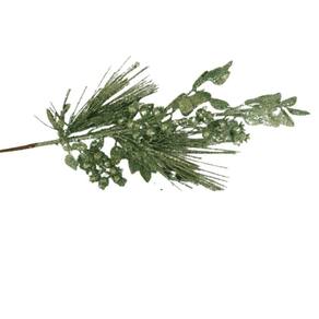 Galho Decorativo Natal 68cm com frutas silvestres, galhos e folhas Verdes, confeccionado em EPS (isopor), Glitter, Plástico e haste de arame revestida.
