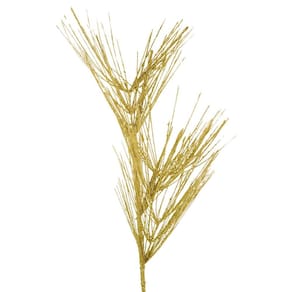 Galho Decorativo Natal Espetos Luxo Glitter Dourado 40cm