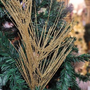 Transforme sua decoração natalina com este galho de espeto dourado, que une o brilho do glitter ao charme natural, criando um ambiente encantador e luxuoso!