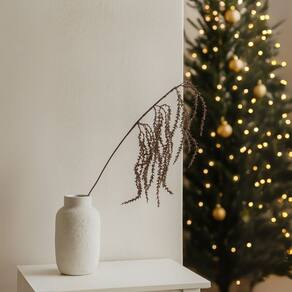 Seu acabamento com mini folhagens laterais e glitter cobre proporciona um toque refinado e festivo, ideal para ser utilizado em vasos, centros de mesa, árvores de Natal, guirlandas e outros arranjos decorativos.