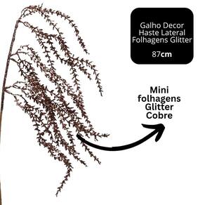 Galho Decorativo Natalino com Mini Folhagens Laterais Glitter Cobre – 87cm