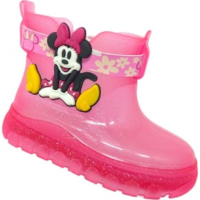 Galocha Infantil Menina Disney Minnie com detalhe em glitter, perfeita para o dia a dia, passeio e escola. Seu design em tom rosa vibrante com brilho sutil e a icônica personagem Minnie proporcionam charme e diversão para as pequenas. Desenvolvida com material resistente e impermeável, garante proteção contra chuva e lama, mantendo os pés secos em qualquer situação. O cano baixo facilita o calce e o ajuste, enquanto a sola antiderrapante oferece segurança e conforto durante as brincadeiras. Ideal para crianças que adoram estilo e praticidade, essa galocha une qualidade, durabilidade e o universo encantado da Disney.
