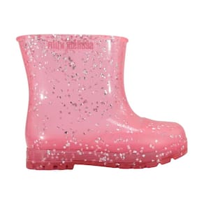 A Mini Melissa Welly Shiny Elements Baby é a bota de bebê que transforma qualquer dia em um momento mágico. Com efeito jelly translúcido e aplicação de glitters em formato de coração, ela brilha a cada passinho, trazendo diversão e encanto para o look das pequenas.