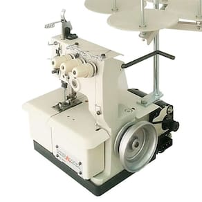 Máquina de costura galoneira 4 fios portátil. Utilizada para barras, bainhas, debrum (viés) e rebatimento de elástico em tecidos leves. Produto nacional fabricado por uma empresa 100% brasileira.