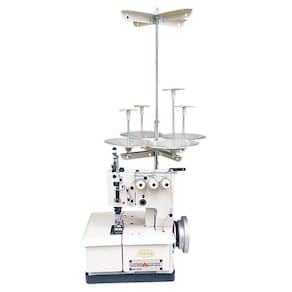 Máquina de costura galoneira 4 fios portátil. Utilizada para barras, bainhas, debrum (viés) e rebatimento de elástico em tecidos leves. Produto nacional fabricado por uma empresa 100% brasileira.