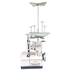 Máquina de costura galoneira 4 fios portátil. Utilizada para barras, bainhas, debrum viés e rebatimento de elástico em tecidos leves. Produto nacional fabricado por uma empresa 100% brasileira.