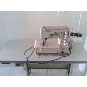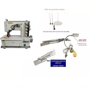 DESCRIÇÃO DA MÁQUINAMáquina de costura industrial tipo galoneira. Aplicação parabainha, debrum e rebatimento de elástico.Fabricação 100% nacional.Máquina segue completa, com mesa, tampo, estante, cabeçote, portafios e motor.DETALHES TÉCNICOS 3 agulhas 5 fios Largura da costura = 6,35mm Altura calcador = 6mm Tipo agulha B63 Comprimento máximo do ponto = 4mm Lubrificação automática Rotação máxima = 3000 RPM Motor = 3450 RPM Potência = 400 550w Polia motor= 70mmATENÇÃO Ela possue apenas 1 volante e é um pouco mais lenta queoutros modelos de Galoneira Industriais, mas também funciona com 3agulhas e com cobertura, e o ponto igual.*MONTAGEM DO EQUIPAMENTO POR CONTA DO COMPRADORACOMPANHA O KIT:Acompanha 1 kit de acessórios:1 - Aparelho de viés1 - Luminária de LED com haste flexível 1- Aparelho Elástico Mexicano1- Suporte de Rolos