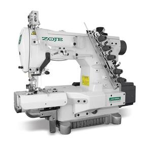 Máquina de Costura Galoneira Cilíndrica Eletrônica com Refilador e Sugador. Ideal para bainhas cilíndricas de barra de camisa e mangas. Possui corte de linha, sugador de resíduos elétrico, luz de LED, motor Direct-Drive, posicionador de agulhas, motor de passo no transporte e controle de velocidade. Adequada para tecidos leves e médios, uso industrial.Funções