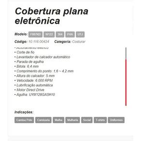 A máquina possui funções automáticas controladas eletromagneticamente: - corte de linha, - posicionamento da agulha, - levantando o calcador.