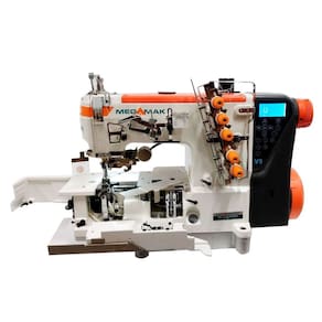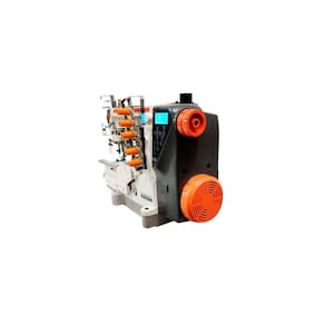 Galoneira plana com motor Direct Drive, parada de agulha em cima/baixo, corte de linha por solenóide magnético e ajuste de velocidade. Utilizada em costuras leves e médias.