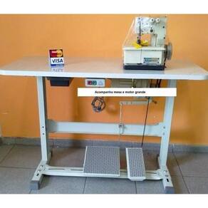 Descrição da máquina + Acompanha 1 kit de acessórios: 1 - Aparelho de viés 1 - Luminária de LED com haste flexível 1- Aparelho Elástico Mexicano 1- Suporte de Rolos Máquina de costura tipo galoneira. Aplicação para bainha, debrum (colarete) e rebatimento de elástico. DETALHES TÉCNICOS: 2 agulhas; 3 fios; Largura da costura = 6,35mm; Altura calcador = 6,0mm; Tipo de Agulha DVx63; Comprimento máximo do ponto = 4mm; Lubrificação manual com buchas auto-lubrificantes a base de grafite e eixo central acoplado em 2 rolamentos; Buchas da barra de agulha em bronze sinterizado; Rotação máxima = 2000 RPM; Motor = 7000 – 9000RPM; Potência 400w Motor acoplado à máquina; A MONTAGEM É FEITA POR CONTA DO COMRPADOR !