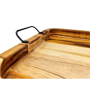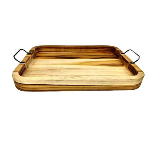 GAMELA RETANGULAR BANDEJA DE MADEIRA TECA COM ALÇA