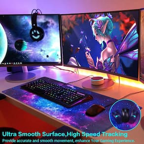Canjoy 1 Pack 31.5x15.7 polegadas Extended XXL Large Gaming Mouse Pad, melhore sua experiência de jogo/trabalho. Especificações: Material: Poliéster 100% (Superfície) + Borracha (Inferior) Dimensão: 31,5 x 15,7 x 0,12 polegada (80 x 40 x 0,3 cm) Cor: Galaxy Print Superfine Fabric Surface : Coberto por um tecido liso superfino, rastreie o mouse com precisão. Fácil de ser limpo por pano molhado ou lavado. Mais durável por muito tempo de uso. Base de borracha antiderrapante: Este grande mouse pad pode segurar sua mesa com firmeza, evitar o movimento aleatório e fornecer uma operação estável e precisa enquanto você está jogando/trabalhando. Bordas costuradas duplas As bordas costuradas duplas protegem o tapete do mouse contra desgaste, deformação, desgastação. Durável por muito tempo usando. Design lavável Evite o dano ca por bebidas/café derramados. Fácil de ser limpo por toalha molhada, e lavado por muito tempo usando. Nós nos preocupamos com você Somos vendedores responsáveis e oferecemos produtos de alta qualidade para nossos clientes. Por favor, avise-nos se você tiver algum problema com nossos produtos, a equipe de atendimento ao cliente da Canjoy está sempre aqui e pronta para oferecer uma solução a qualquer momento.