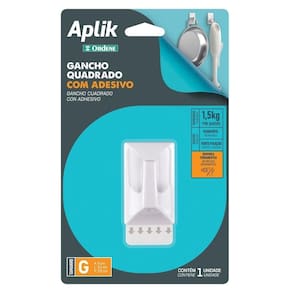 O Gancho Adesivo Plástico Quadrado Grande Branco Aplik Ordene 1 Peça possui com adesivo removível para aderência e serve decorar e organizar sua cozinha, lavanderia, quartos, banheiros, sem sujeira e sem furos. De aplicação prática e rápida, também é de fixação permanente. Ele suporta até 1,5kg por gancho com o seu tamanho grande e cor branca. Pode ser colado em diversas superfícies e, até mesmo, em áreas úmidas. Seu adesivo permite que o gancho seja trocado de lugar sem danificar a parede.