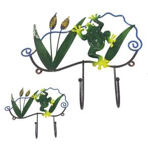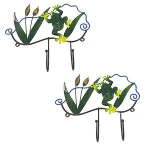 Características:Material: FerroCada unidade do produto tem 2 ganchos de metal, cada um com flor decorativa, pintadaCor predominante: verdeO gancho tem desenho pintado de pequeno sapo e 2 ganchos