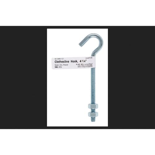 Características. Varal Bolt Hook. Duas 14 nozes. Diâmetro do fio 213. 4 no geral. Diâmetro da rosca 14. Gancho ID 916. Comprimento da rosca 278. Comprimento do gancho 1. Limite de carga 80 libras. Especificações de aço zincado.