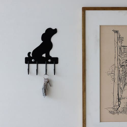 Gancho de Parede Aramado Cachorro para pendurar xícaras e dar um charme à sala de estar, cozinha, escritório ou outros espaços dedicados ao preparo e consumo de café. Harmonizando bem em projetos tanto clássicos quanto elegantes Acabamento: Pintura Ambiente Principal: Sala de Estar Cor: Preto Cor do Produto: Preto Escala de Brilho: Fosco Itens Inclusos: 1 gancho e manual de montagem Manual de Montagem e Instalação: https://product-hub-prd.madeiramadeira.com.br/938951/documents/3764207e-322a-48f8-b6a0-4414e77cd56f2308591547817258837299817.pdf Material Principal: Aço Necessita Montagem: Não Peso: 0,18 kg Recomendações de Uso, Manutenção e Limpeza: Recomendável instalação em parede de alvenaria. Para limpeza, utilize sabão ou detergente neutro e esponja macia. Nunca use solventes, objetos cortantes ou abrasivos.