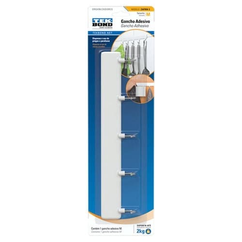 Gancho De Plástico Branco E Metal Zafira Médio A linha de ganchos e organizadores adesivos da Tekbond oferece uma solução prática e resistente para você decorar e organizar a sua casa ou o seu ambiente de trabalho. Principais Características: